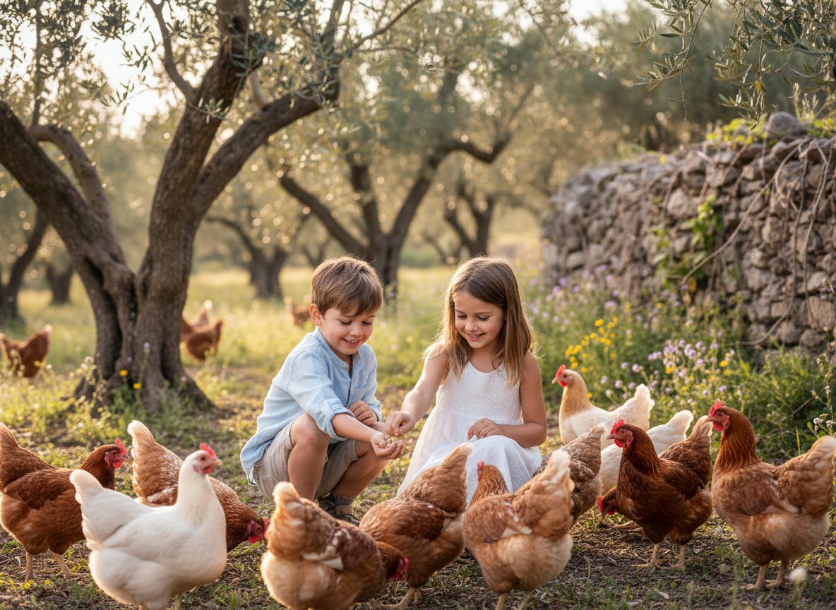Reserva una Experiencia de Granja Familiar durante tu estancia con nosotros en los olivares. ¡Conoce magníficos caballos, gallinas, ovejas/corderos, cabras y vacas/terneros y nuestro conejo! Y sin olvidarnos de nuestros perros Nuestro amable personal estará allí para guiarlo, ofreciéndole información sobre las prácticas sostenibles de cultivo de olivos y compartiendo historias sobre la historia del Cortijo.